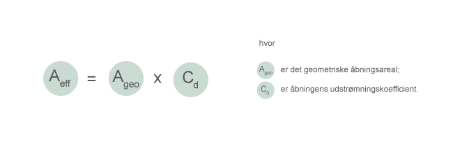 Til systemet med naturlig ventilation defineres det effektive åbningsareal af følgende:
