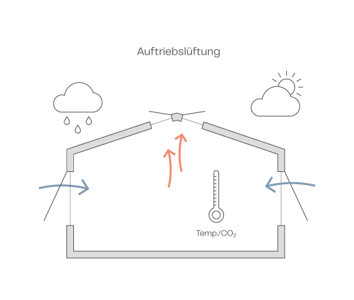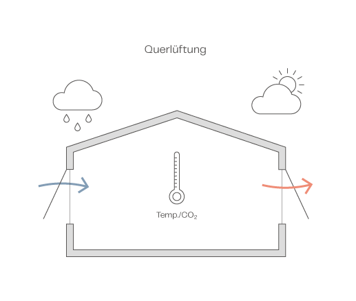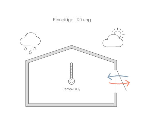 Lösungen mit einseitiger Lüftung bieten eine deutlich geringere Leistung als Lösungen mit Querlüftung oder Auftriebslüftung. Daher ist es wichtig, dass Sie Ihre Erwartungen auf das jeweils verwendete Lüftungsprinzip abstimmen.