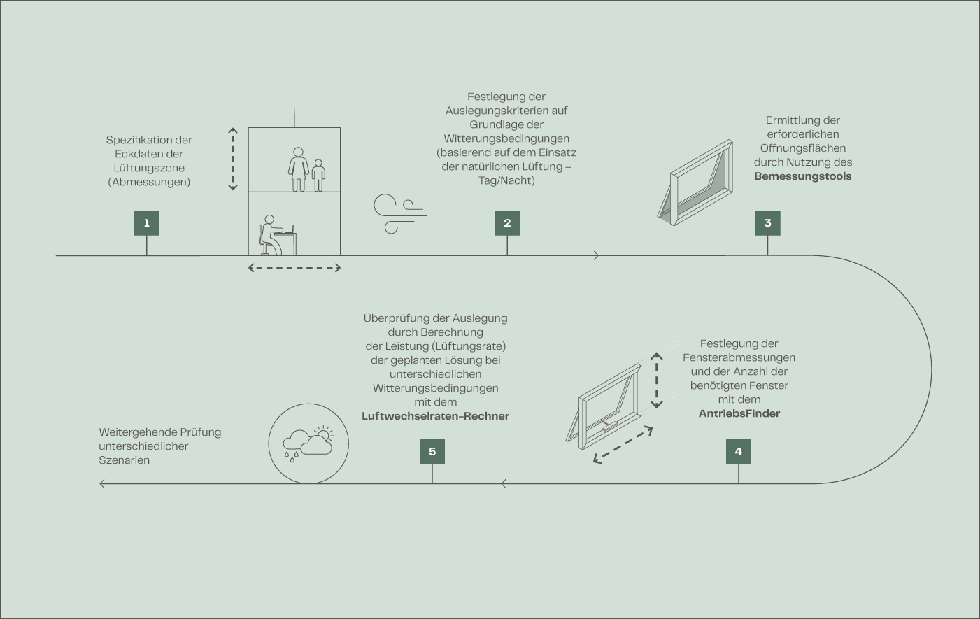 In dieser Anleitung erfahren Sie, wie Sie mit unseren Berechnungs- und Bemessungstools die steuerbaren Fenster für die natürliche Lüftung planen und Ihre Planung anschließend überprüfen können.