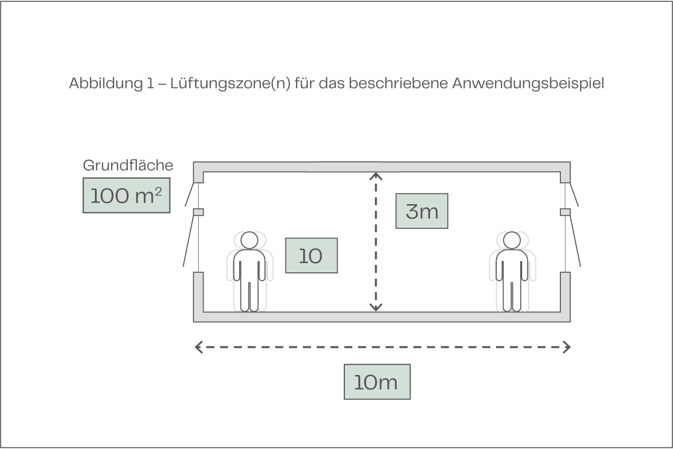 Das folgende Anwendungsbeispiel verdeutlicht, wie die Berechnungs- und Bemessungstools von WindowMaster Ihnen in der Planungsphase einen ersten Überblick über die Auslegung der natürlichen Lüftung vermitteln können. Wir gehen hier von einem einzelnen Raum mit zwei Lüftungszonen aus und vergleichen die erforderliche Öffnungsfläche und die Anzahl der benötigten Fenster unter Zugrundelegung verschiedener Lüftungsprinzipien und Auslegungskriterien.