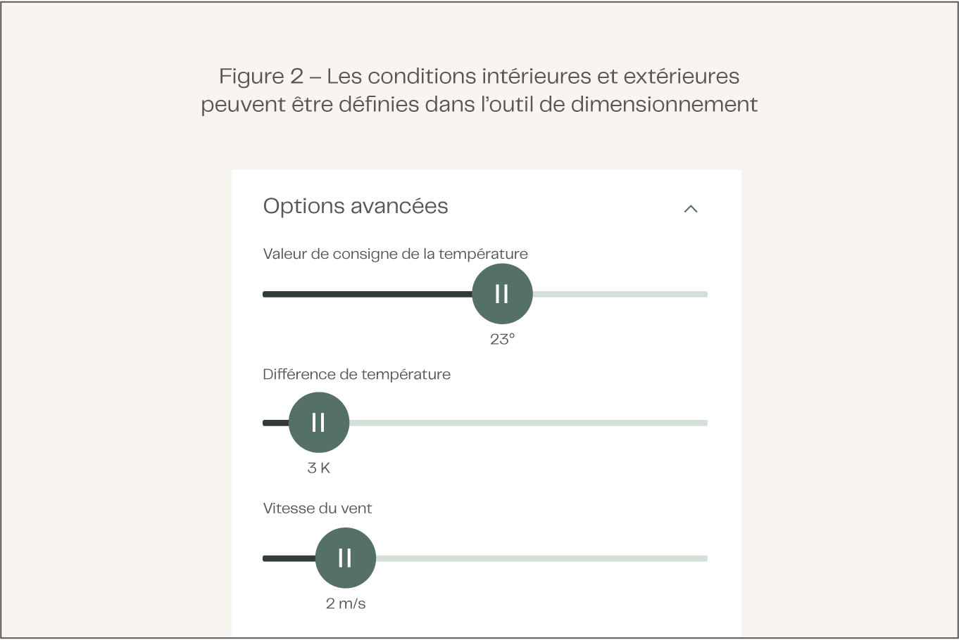 Le configurateur du taux de renouvellement de l’air vous permet d’examiner les performances de votre projet (par rapport au flux d’air) en fonction des conditions extérieures, des principes de ventilation ou des solutions de ventilation.