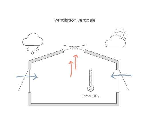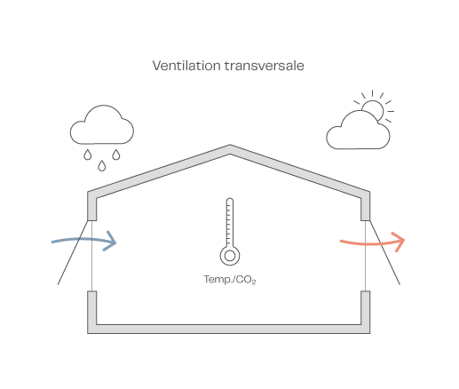 En général, nous recommandons donc de dimensionner les ouvrants de manière à obtenir un design très polyvalent. L’un des avantages de l’utilisation d’ouvrants est la possibilité d’augmenter, à moindres coûts, la capacité de ventilation au-delà des besoins quotidiens standards. Cela peut s’avérer utile dans les cas où une ventilation supplémentaire est requise.