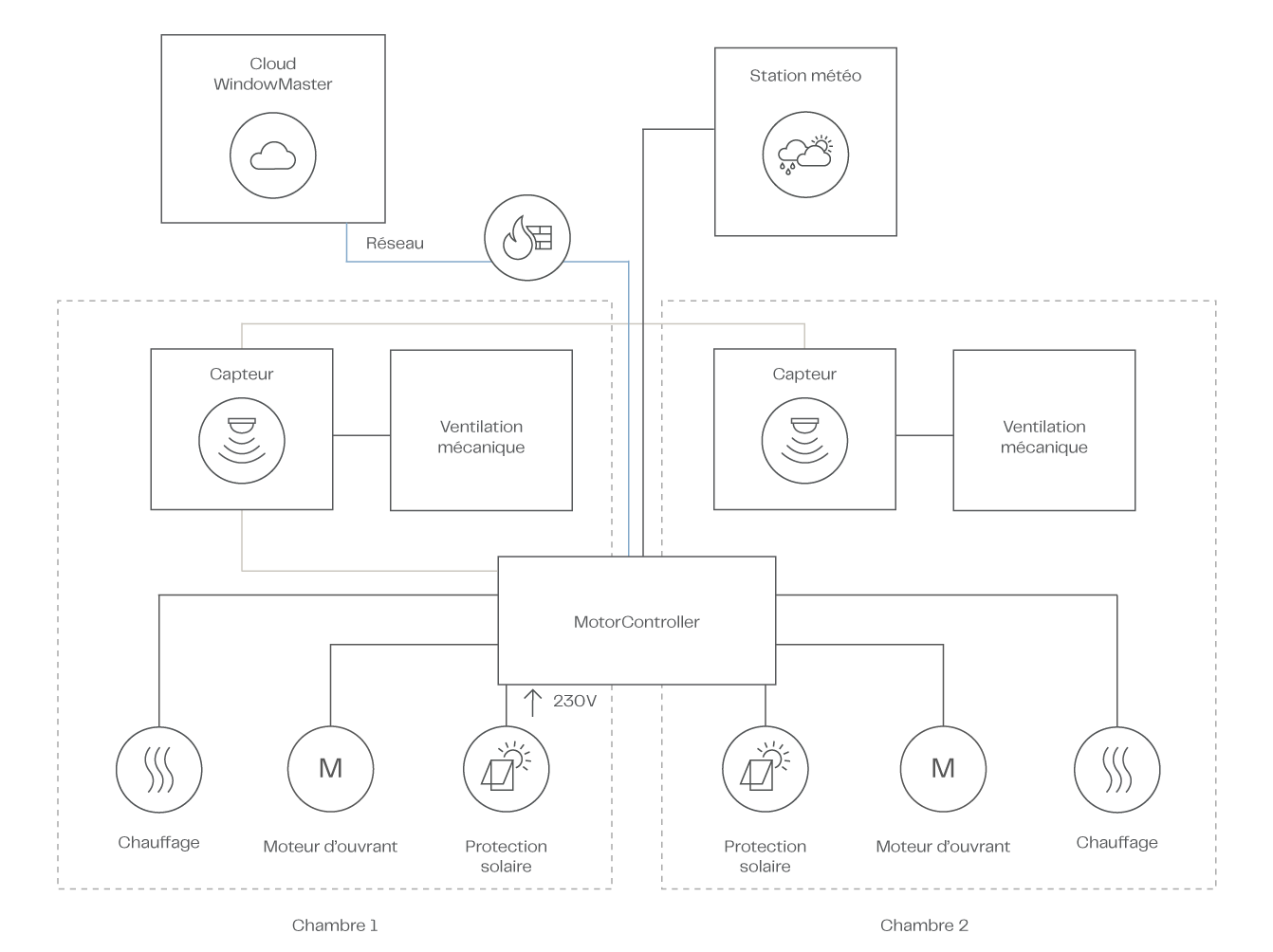 MotorLink® est une technologie de communication bidirectionnelle, qui permet une commande et un retour d’information entre les moteurs d’ouvrants et la gestion technique centralisée via le MotorController (coffret de pilotage). Tous les systèmes de commande WindowMaster sont compatibles avec MotorLink® et la plupart de nos moteurs. Cliquez ci-dessous pour en savoir plus et découvrir les produits correspondants.